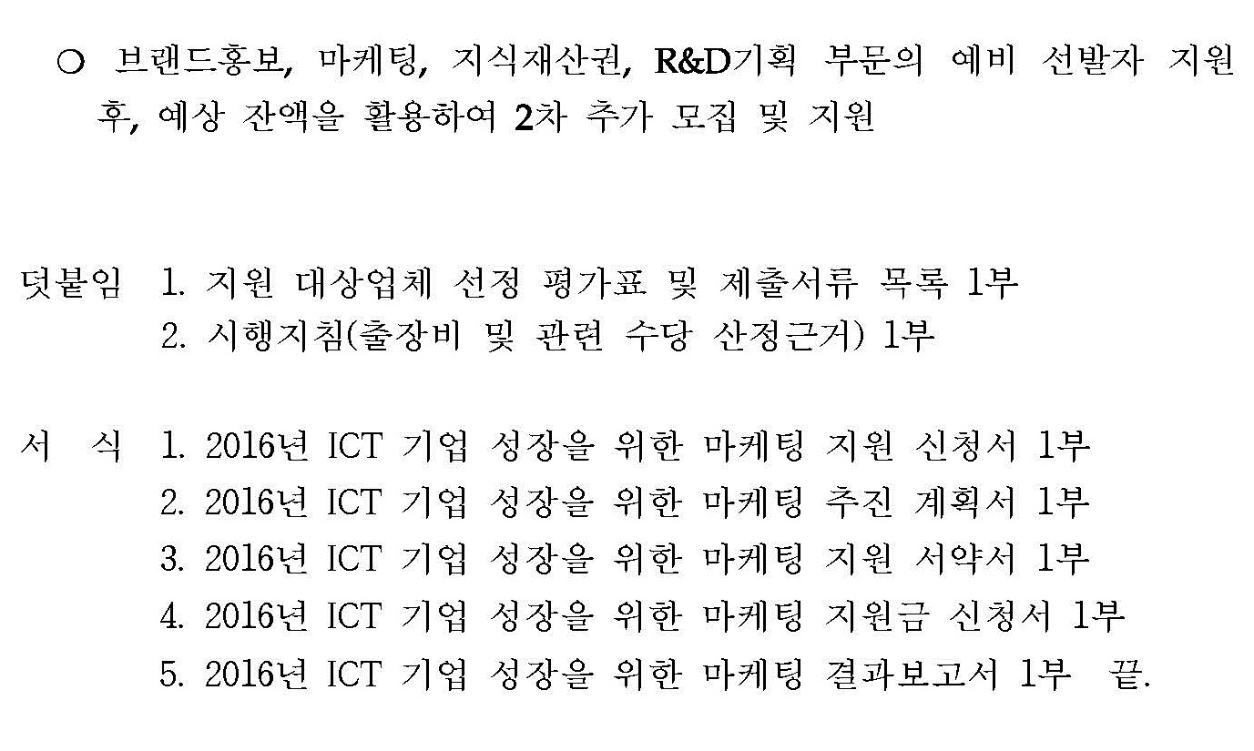 ICT 기업 성장을 위한 마케팅 지원 수혜기업 2차 추가 모집 공고