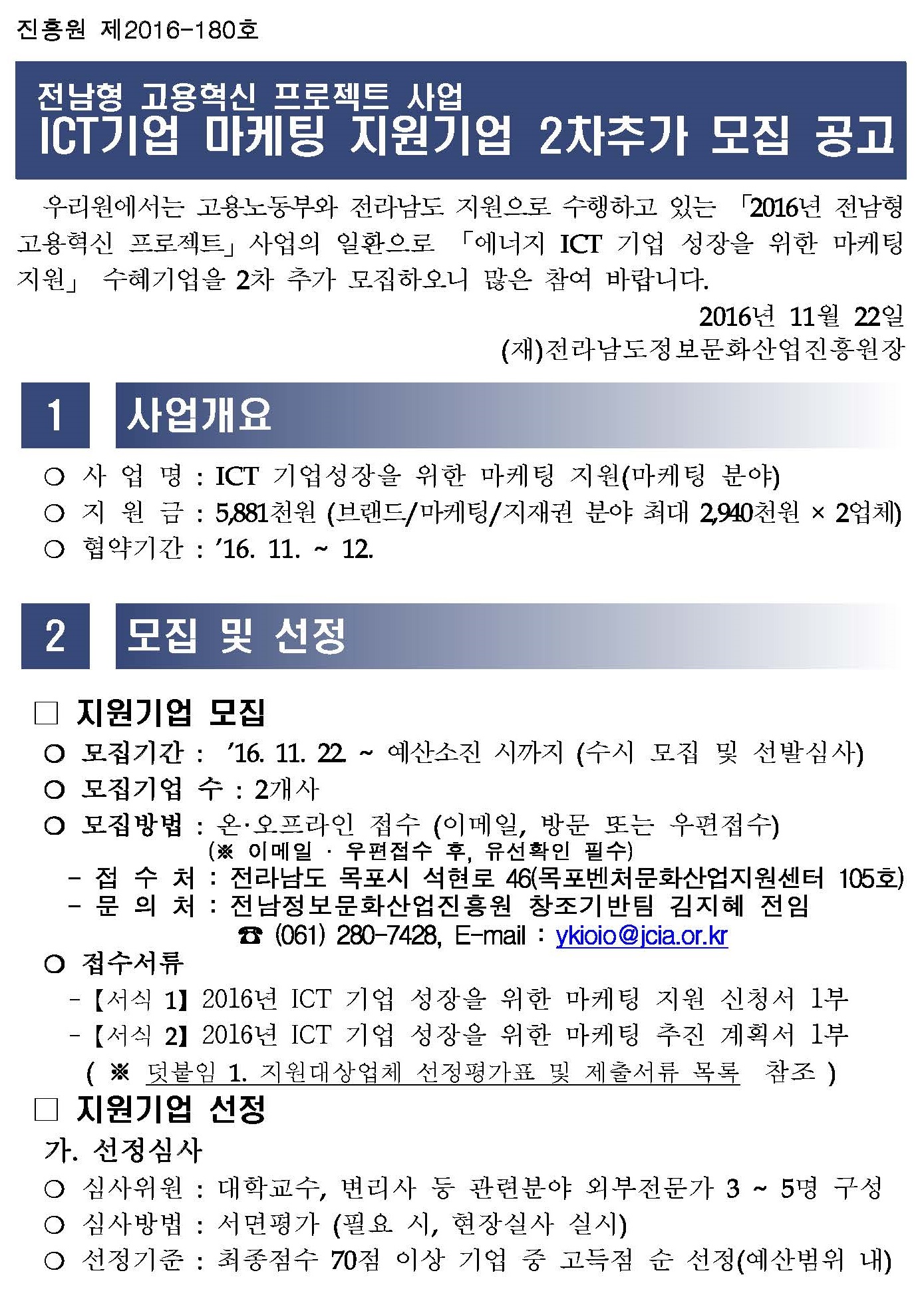 연락처 : <061-339-6903>, <ogm@jcia.or.kr>, 팩스 : <061-331-5004>