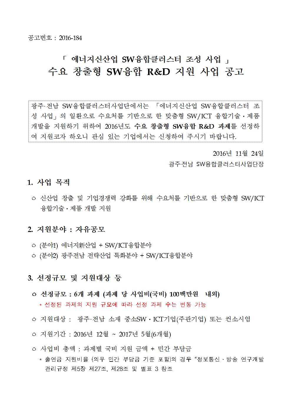 수요 창출형 sw융합 R&D 지원 사업 공고(수정)