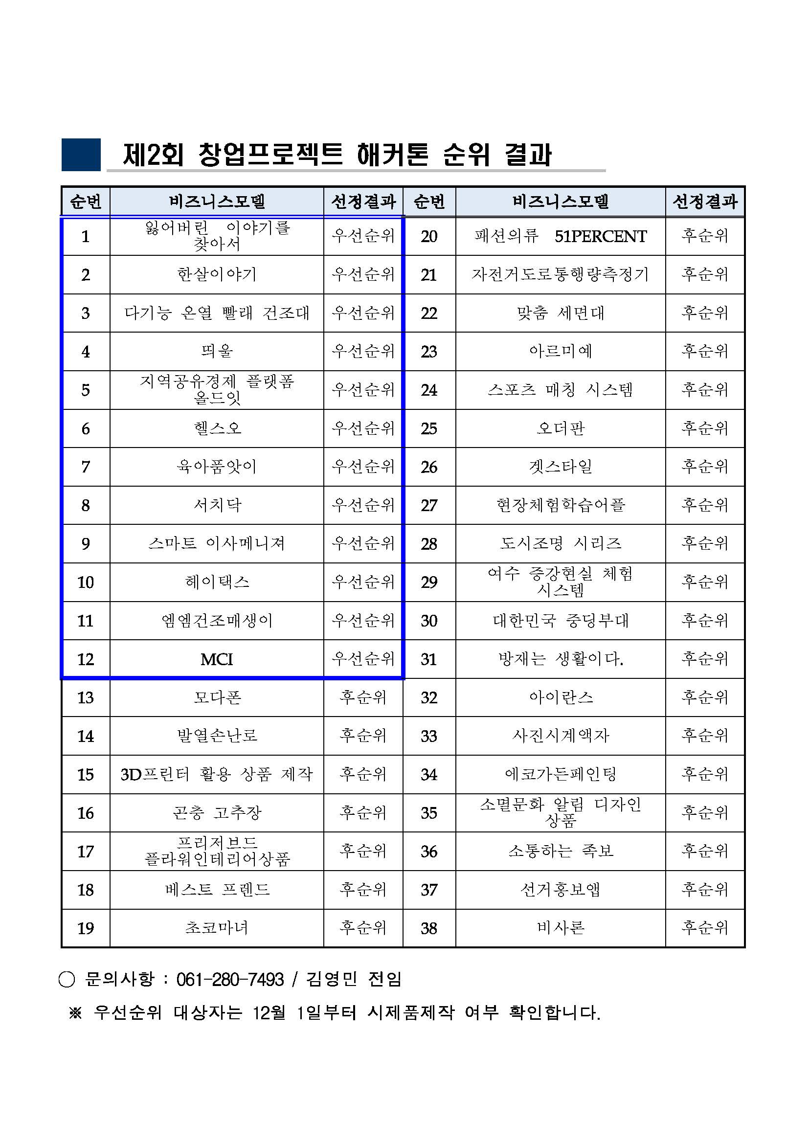 창업프로젝트 해커톤 순위결과 알림