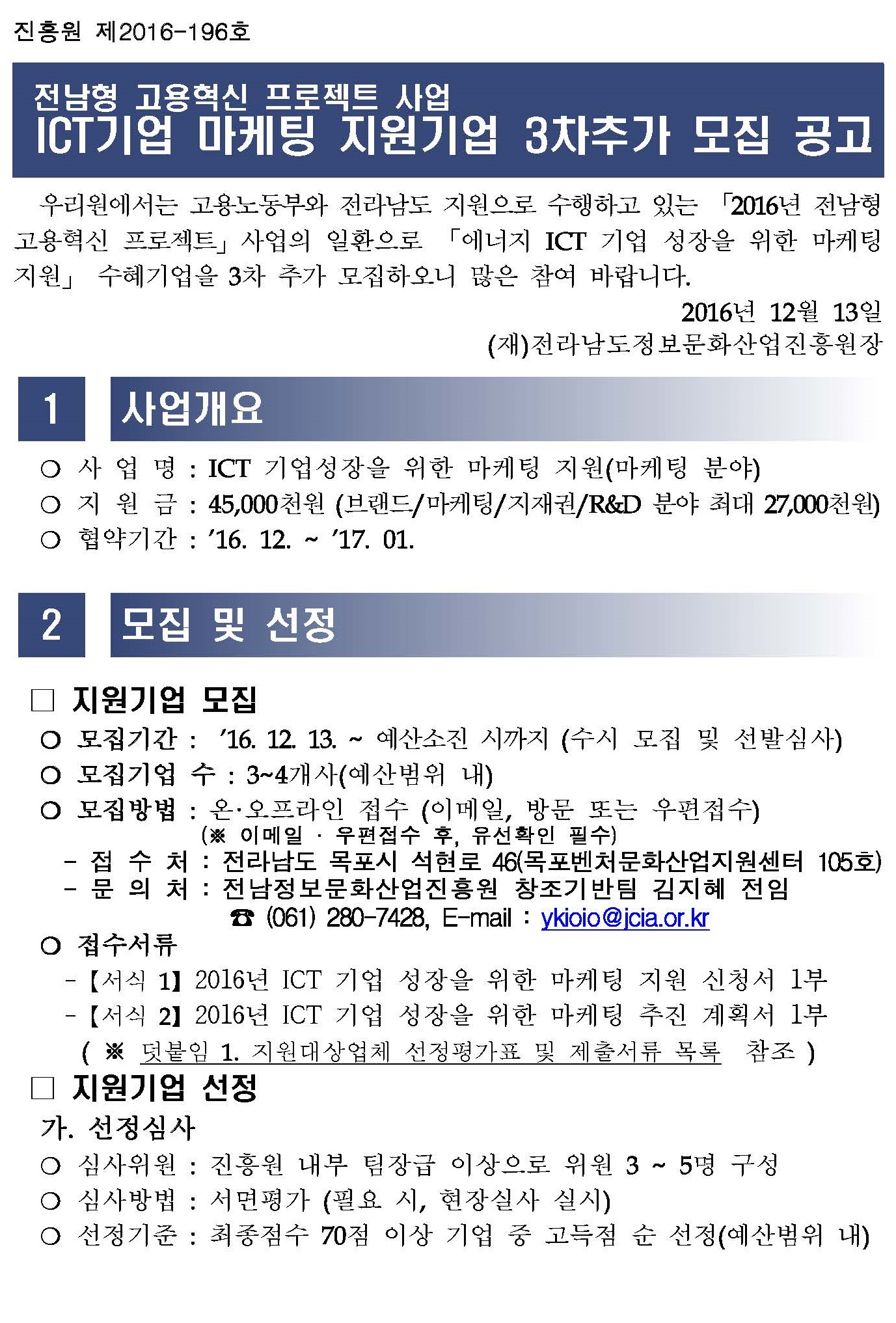 ICT 기업 성장을 위한 마케팅 지원 수혜기업 3차 추가 모집 공고