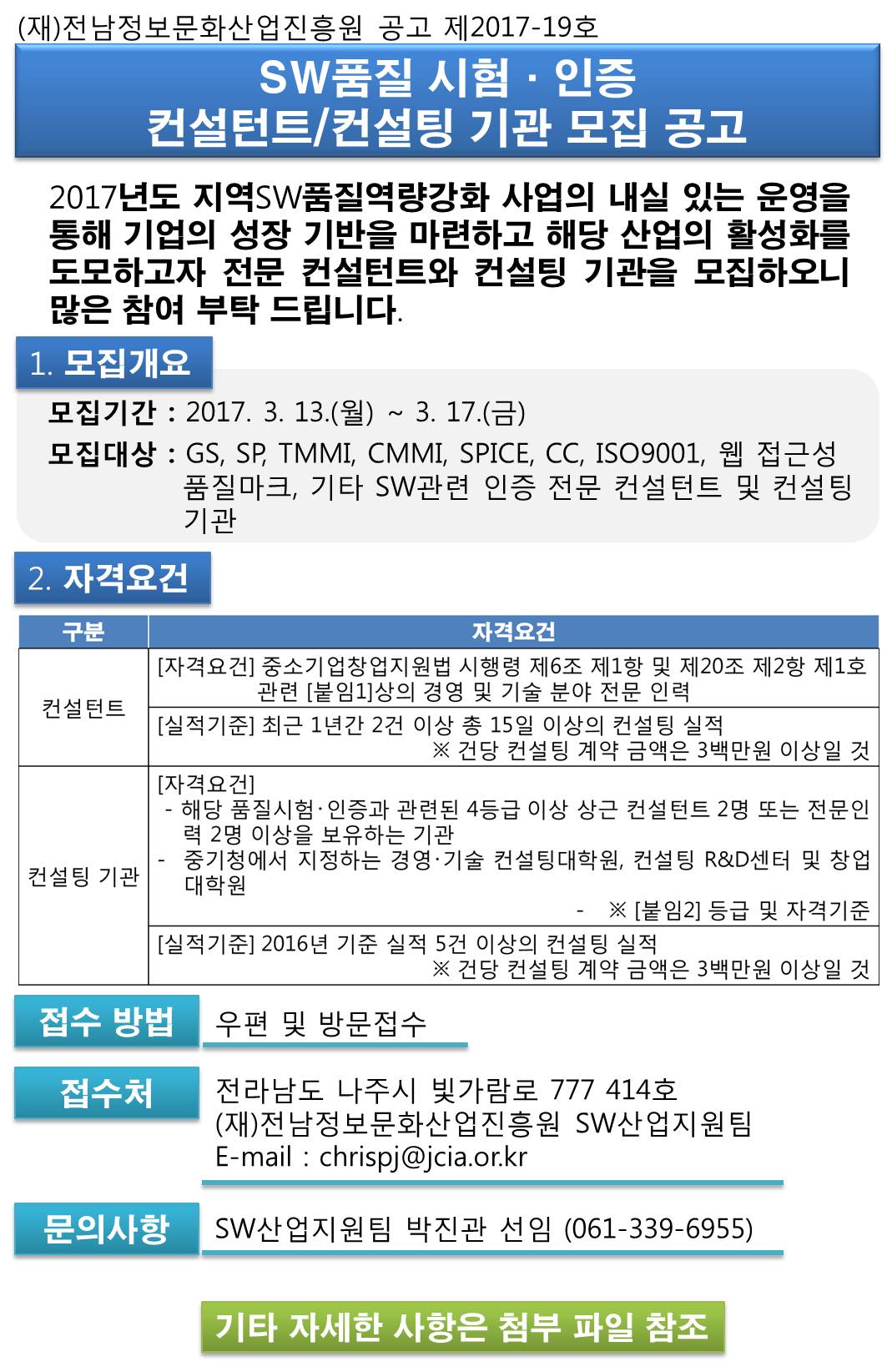 연락처 : <061-339-6903>, <ogm@jcia.or.kr>, 팩스 : <061-331-5004>