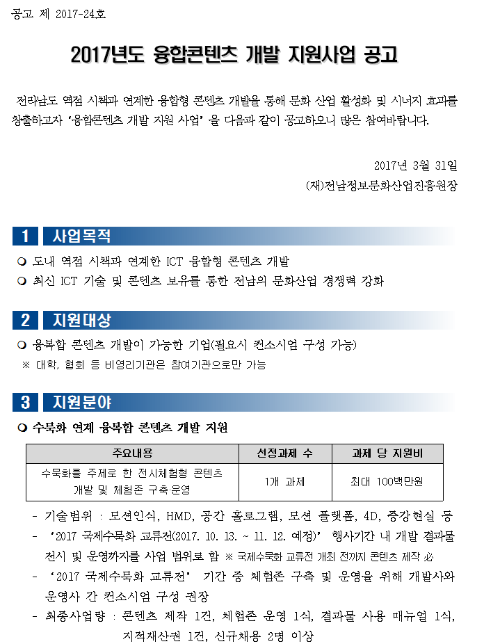 2017 융합콘텐츠 개발 지원사업 공고