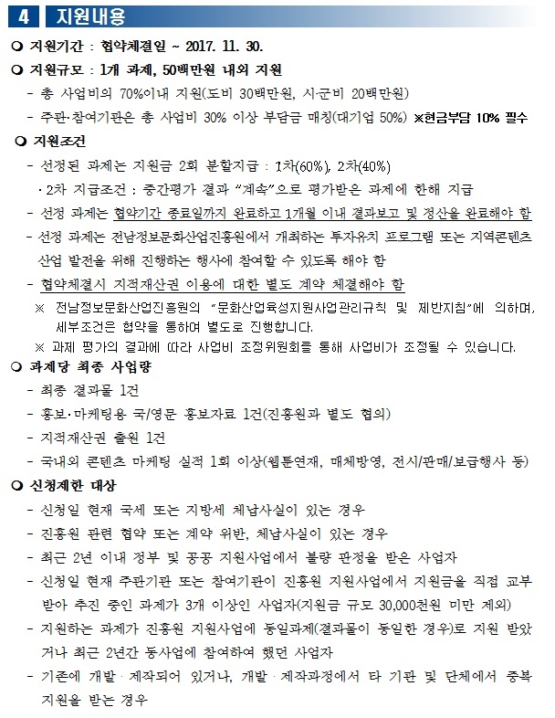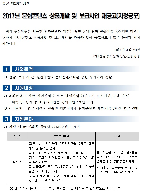 2017년 문화콘텐츠 상품개발 및 보급사업 재공고