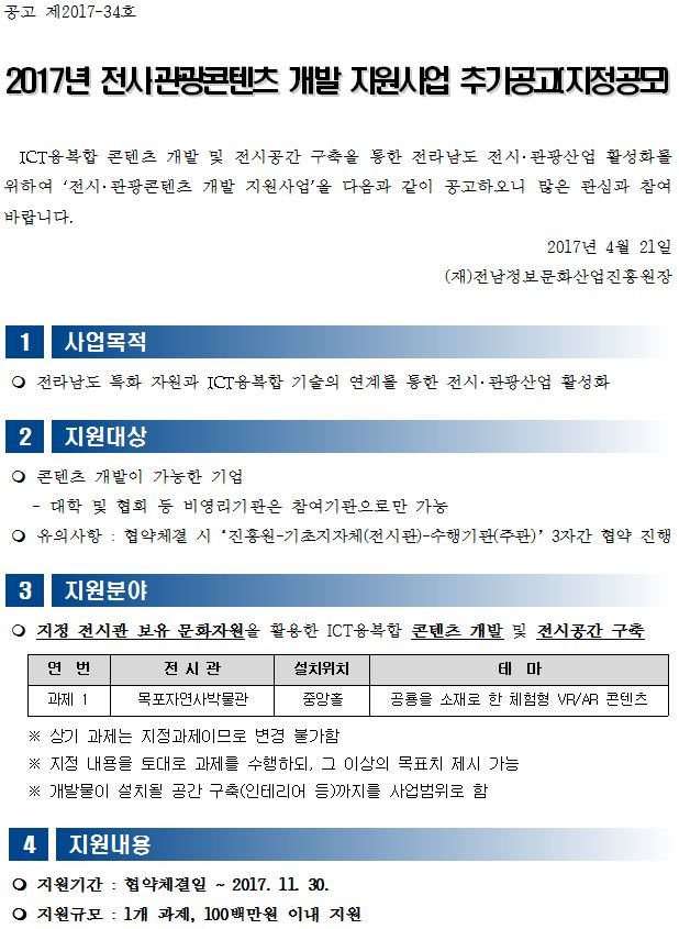 2017 전시·관광콘텐츠 개발 지원사업 추가공고