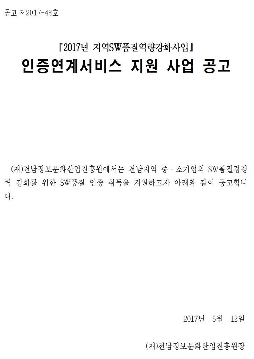 | 이전글 | 2017년 SW품질컨설팅 및 테스팅 지원사업 공고 |