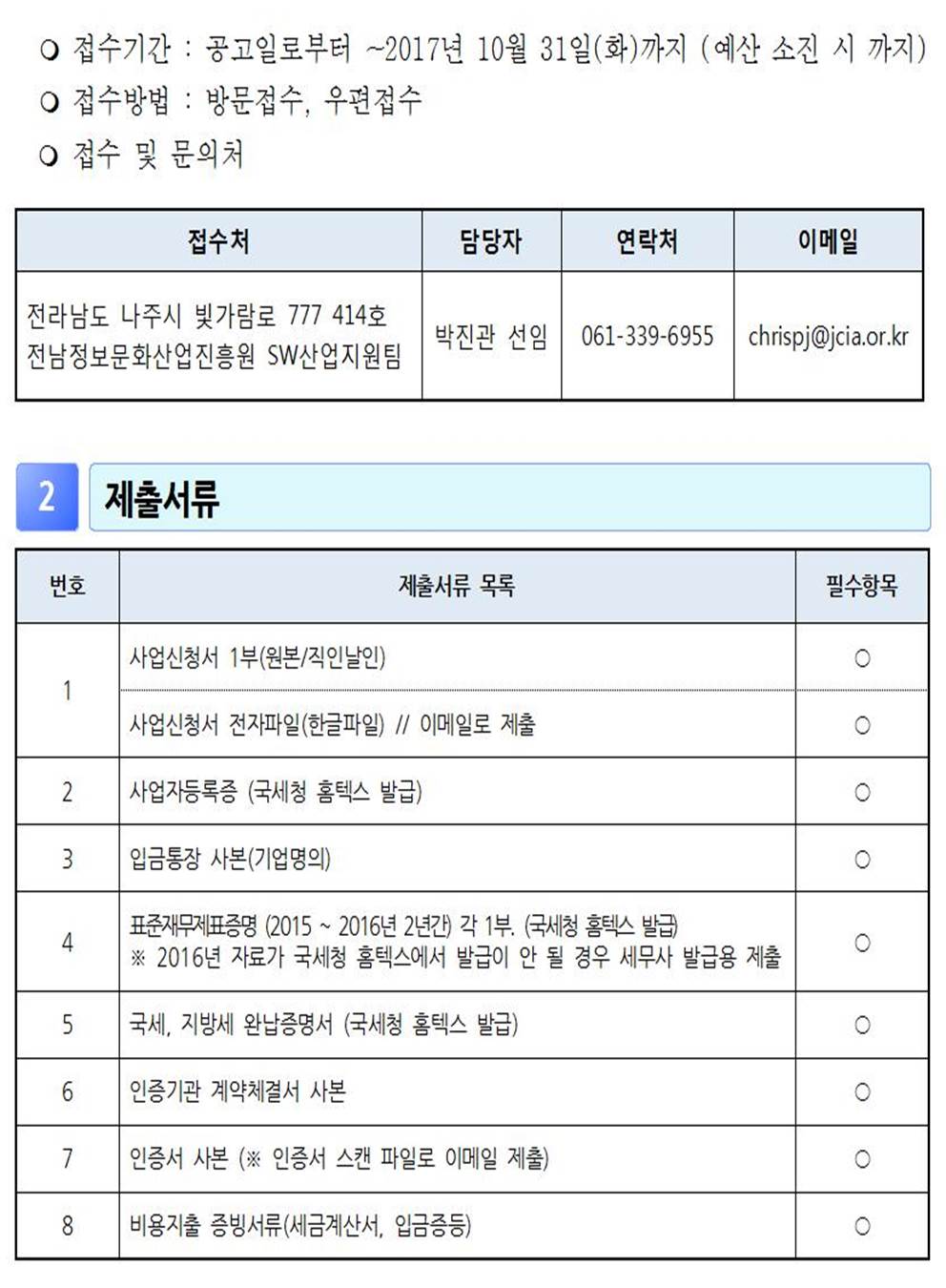 연락처 : <061-339-6903>, <ogm@jcia.or.kr>, 팩스 : <061-331-5004>