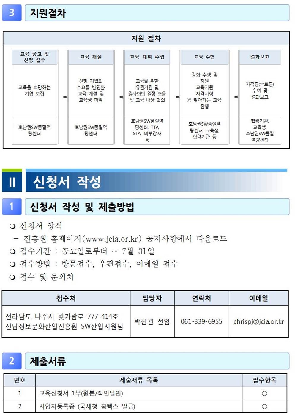 연락처 : <061-339-6903>, <ogm@jcia.or.kr>, 팩스 : <061-331-5004>