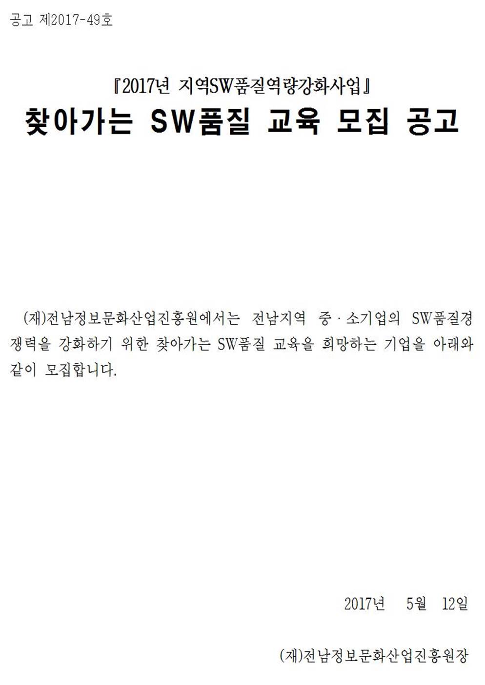 2017년 찾아가는 SW품질 교육 지원사업 공고