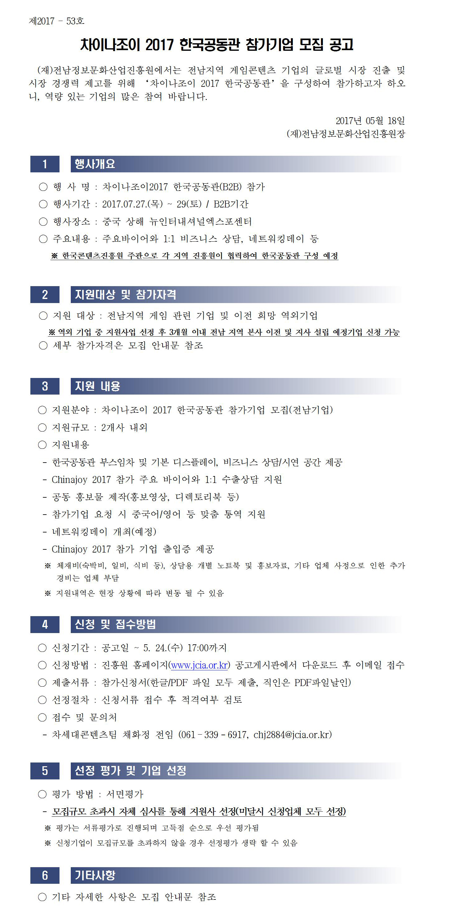 연락처 : <061-339-6903>, <ogm@jcia.or.kr>, 팩스 : <061-331-5004>