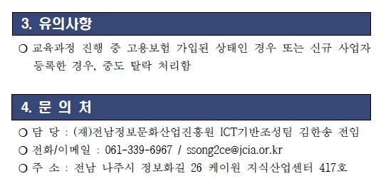 연락처 : <061-339-6903>, <ogm@jcia.or.kr>, 팩스 : <061-331-5004>