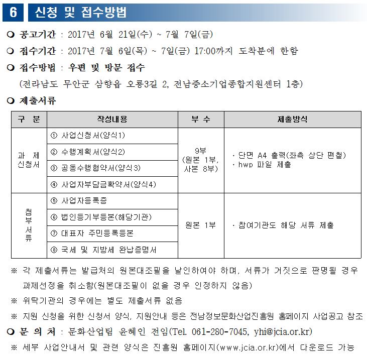 연락처 : <061-339-6903>, <ogm@jcia.or.kr>, 팩스 : <061-331-5004>