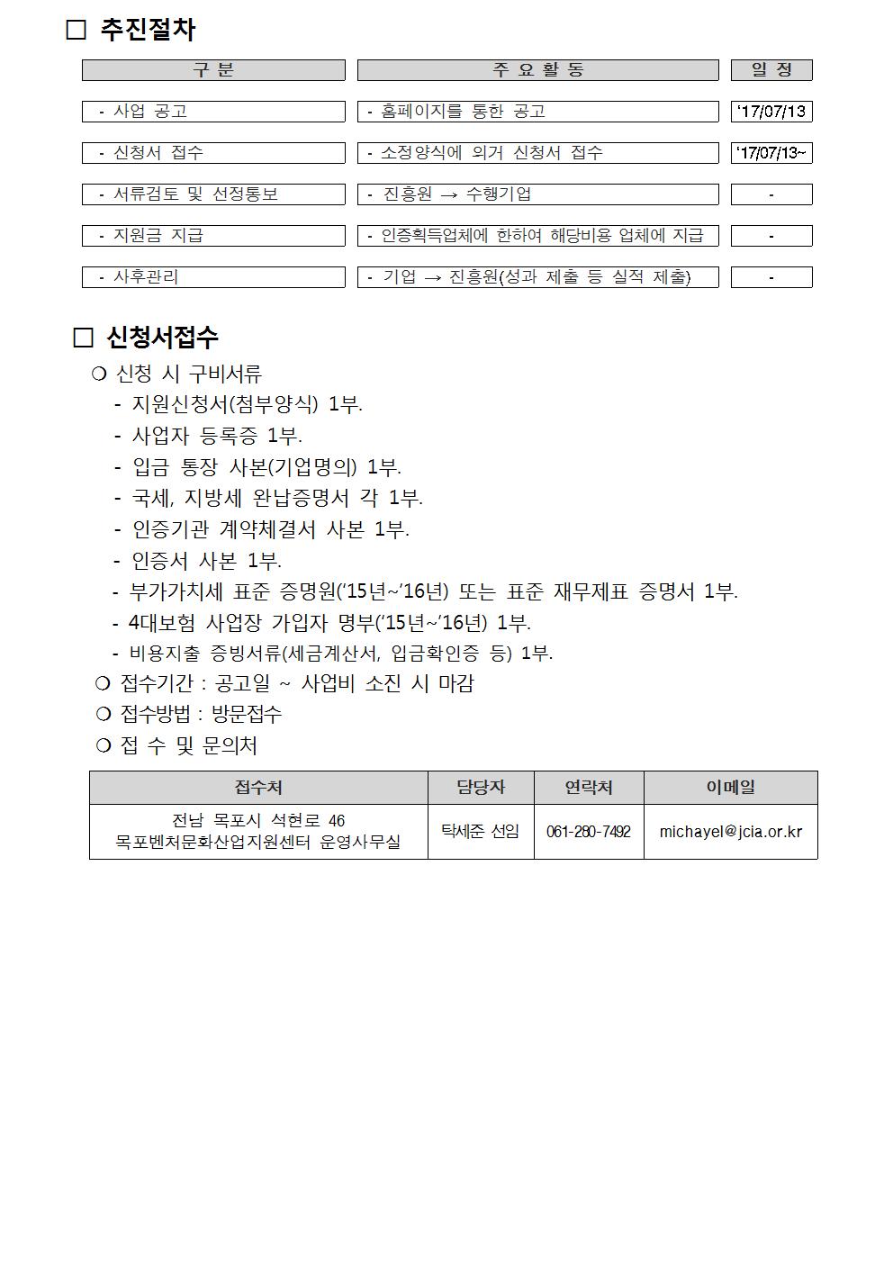연락처 : <061-339-6903>, <ogm@jcia.or.kr>, 팩스 : <061-331-5004>