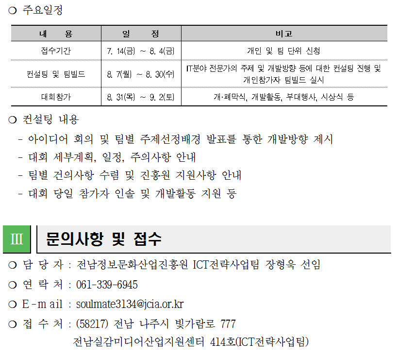 연락처 : <061-339-6903>, <ogm@jcia.or.kr>, 팩스 : <061-331-5004>