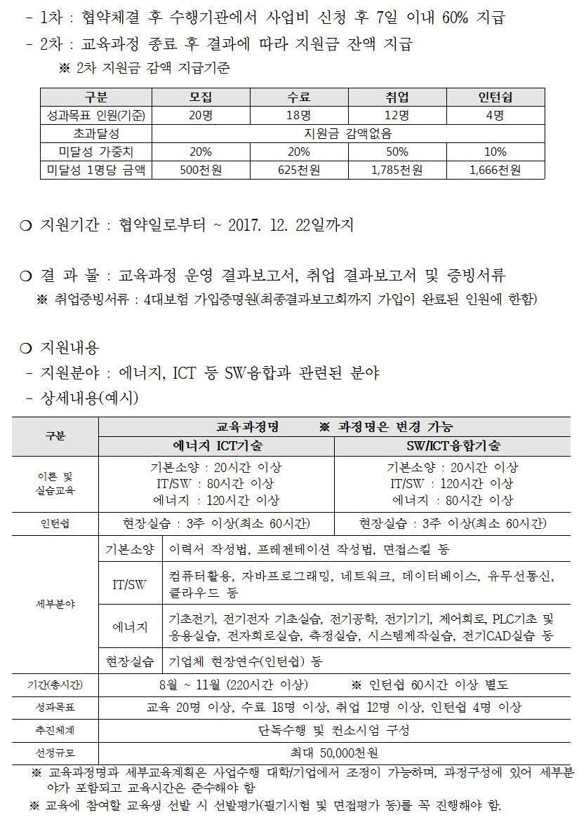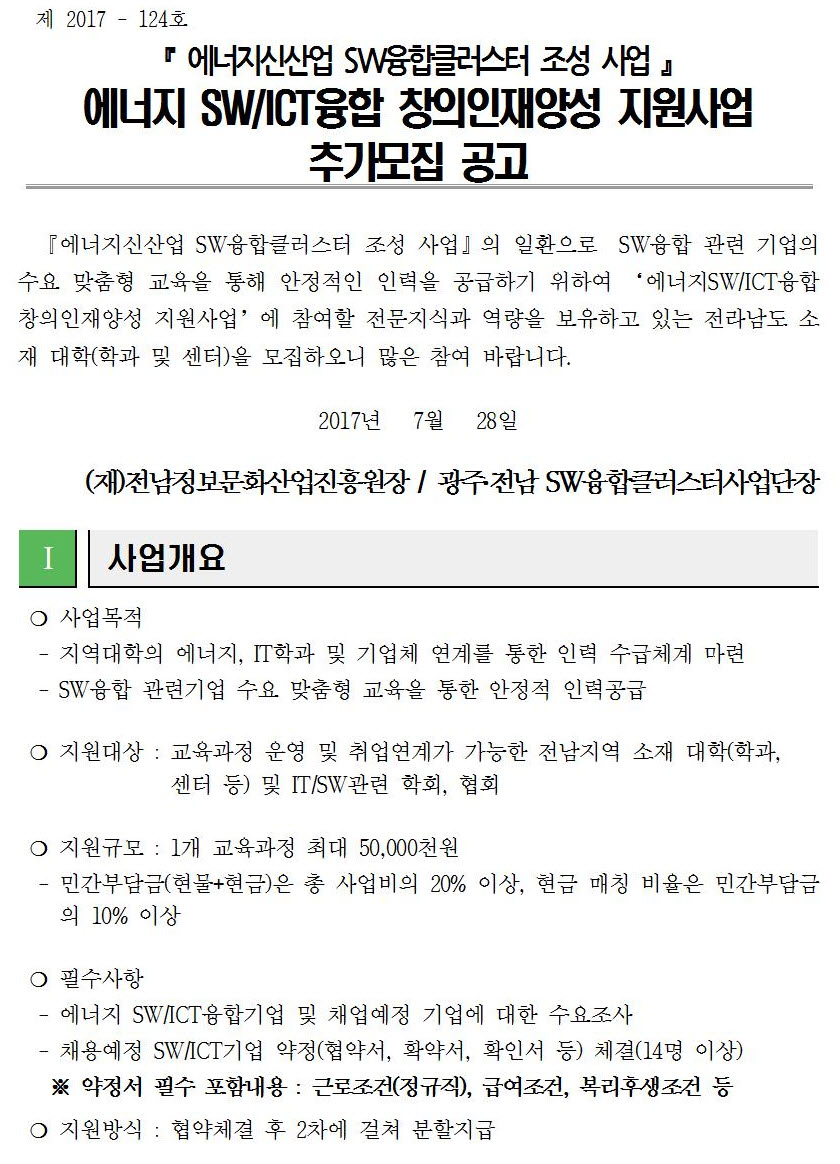 2017년「에너지 SWICT융합 창의인재양성 지원사업」 추가모집 공고