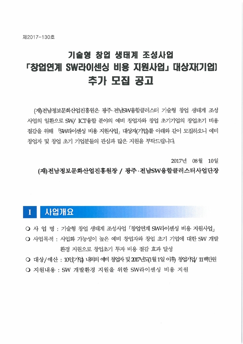 「창업연계 SW라이센싱 비용 지원사업」대상자(기업) 추가 모집공고