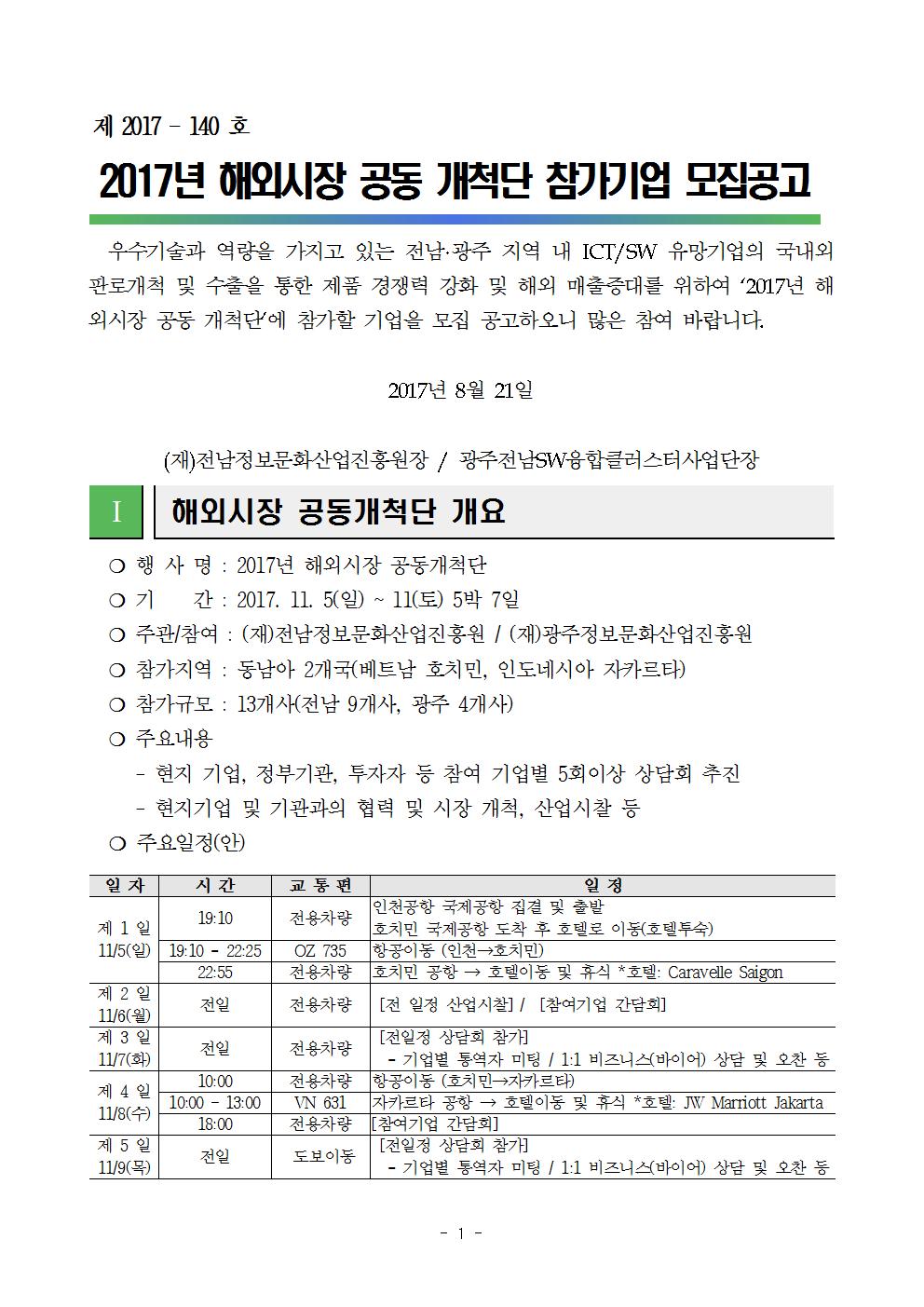 2017년 해외시장 공동개척단 참가기업 모집(~8/31까지)