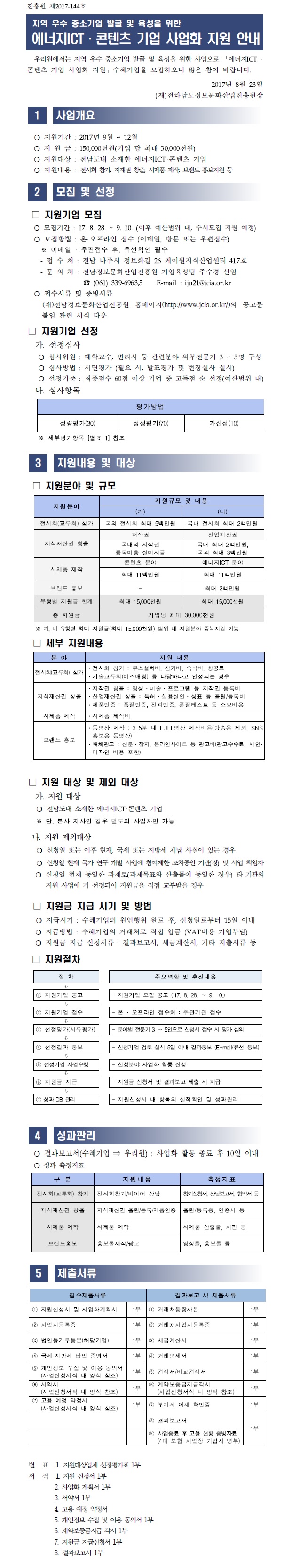 에너지ICT·콘텐츠 기업 사업화 지원 안내