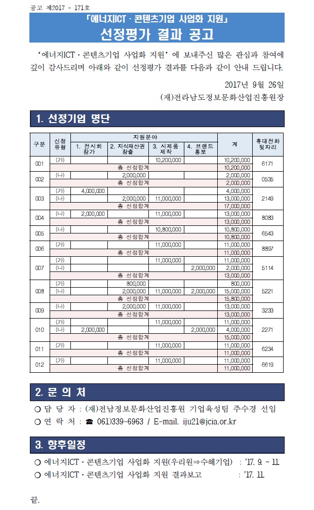 2017 에너지 ICT 콘텐츠기업 사업화 지원기업 선정공고