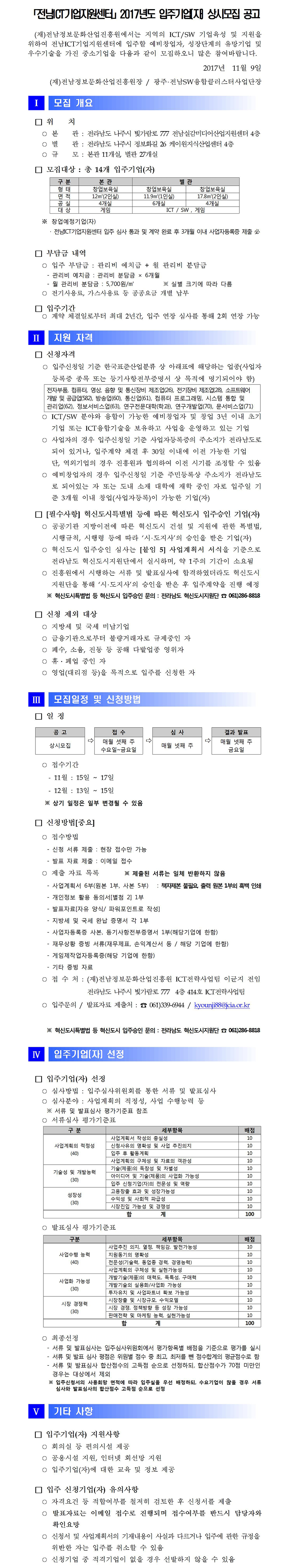 「전남ICT기업지원센터」2017년도 입주기업(자) 상시모집 공고
