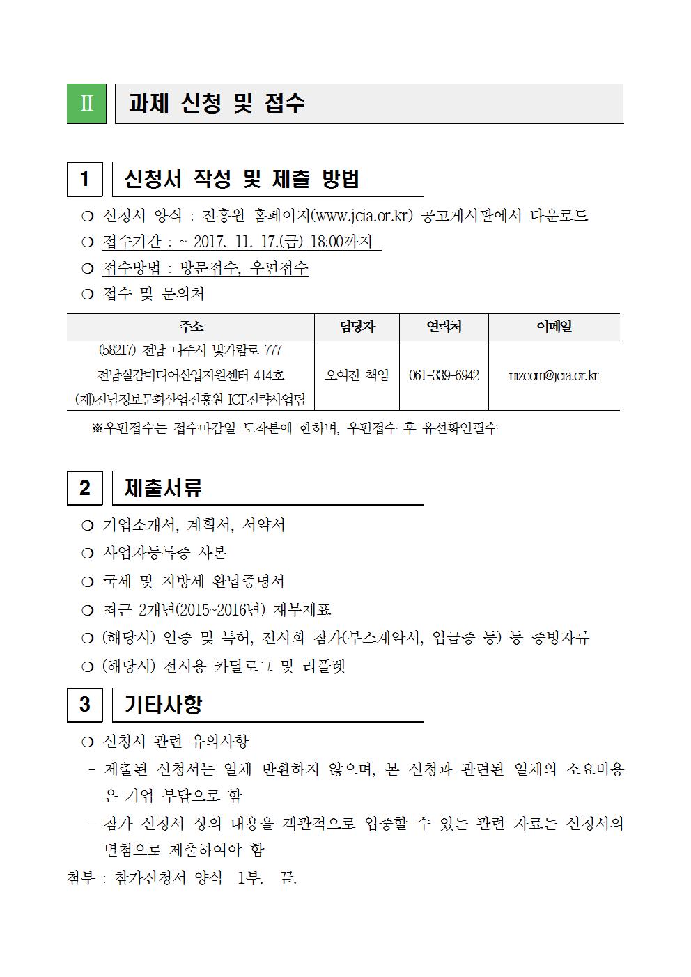 연락처 : <061-339-6903>, <ogm@jcia.or.kr>, 팩스 : <061-331-5004>