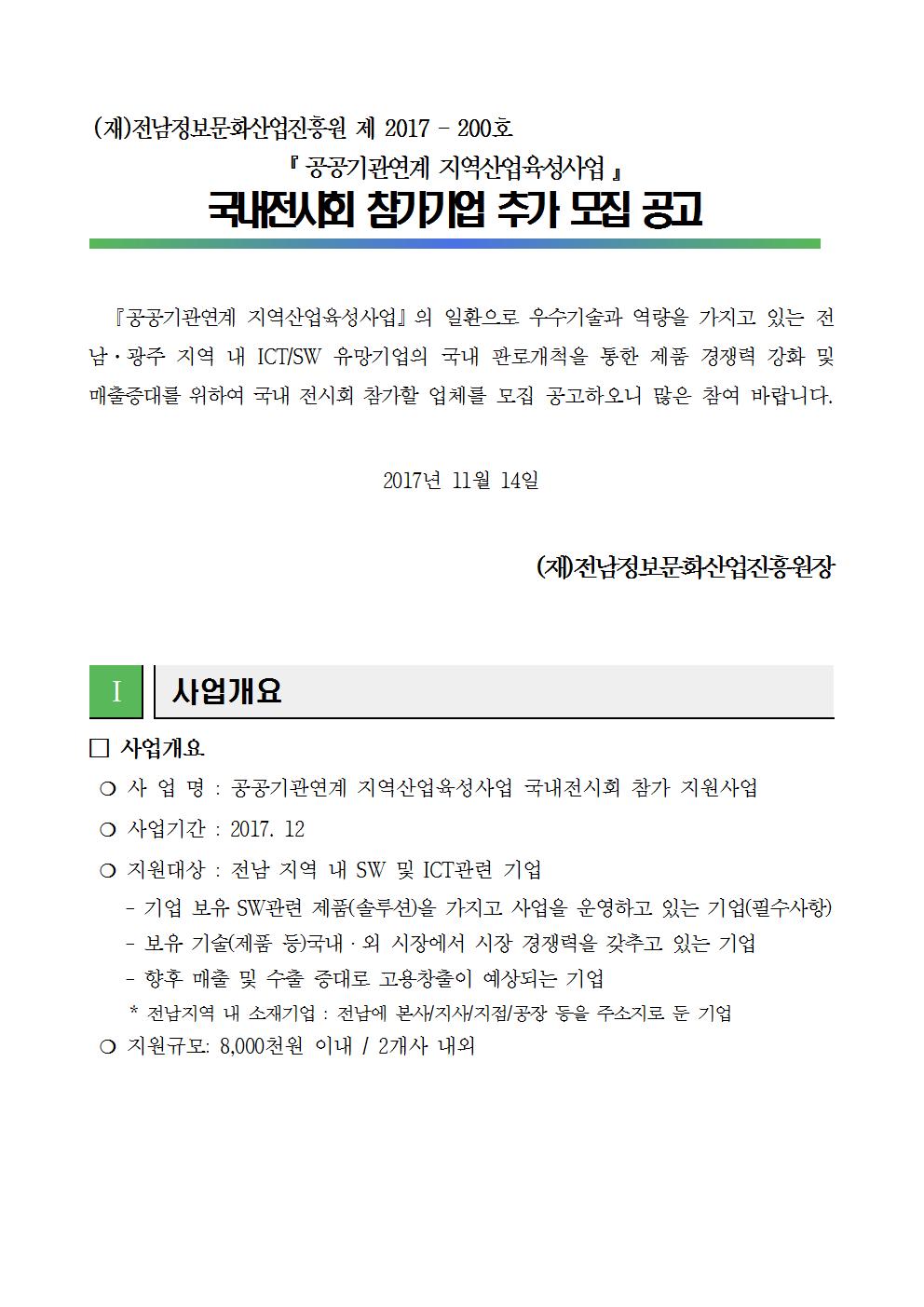 『 공공기관연계 지역산업육성사업 』국내전시회 참가기업 추가 모집 공고