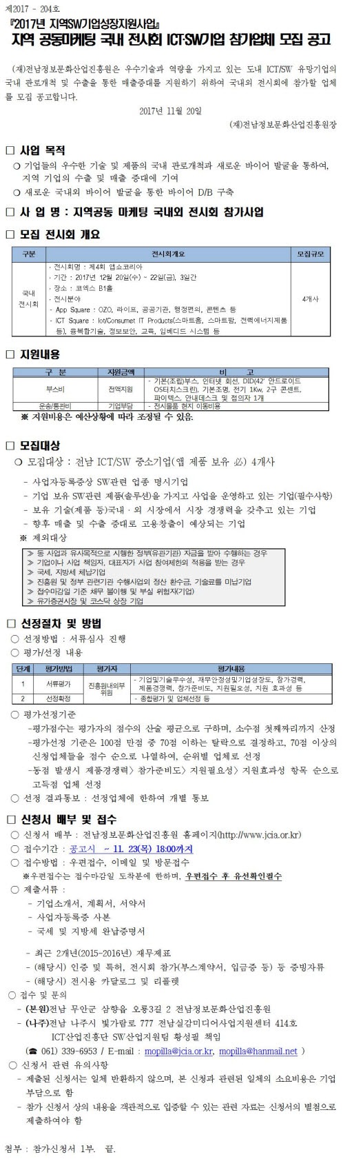 연락처 : <061-339-6903>, <ogm@jcia.or.kr>, 팩스 : <061-331-5004>