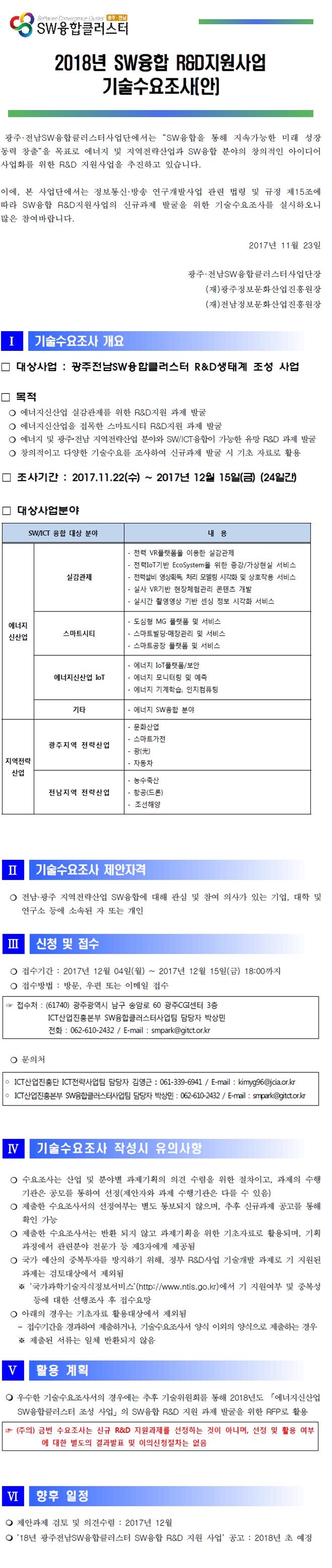 2018년 SW융합 R&D 지원 사업 기술수요조사