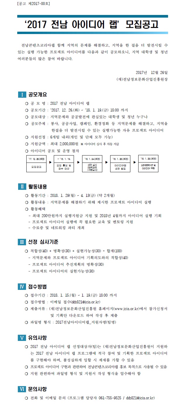 연락처 : <061-339-6903>, <ogm@jcia.or.kr>, 팩스 : <061-331-5004>