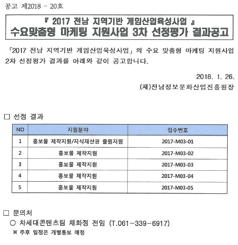연락처 : <061-339-6903>, <ogm@jcia.or.kr>, 팩스 : <061-331-5004>
