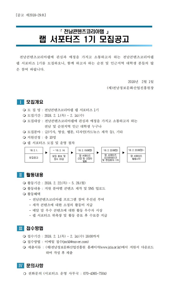 [전남콘텐츠코리아랩] 랩 서포터즈 1기 모집 안내
