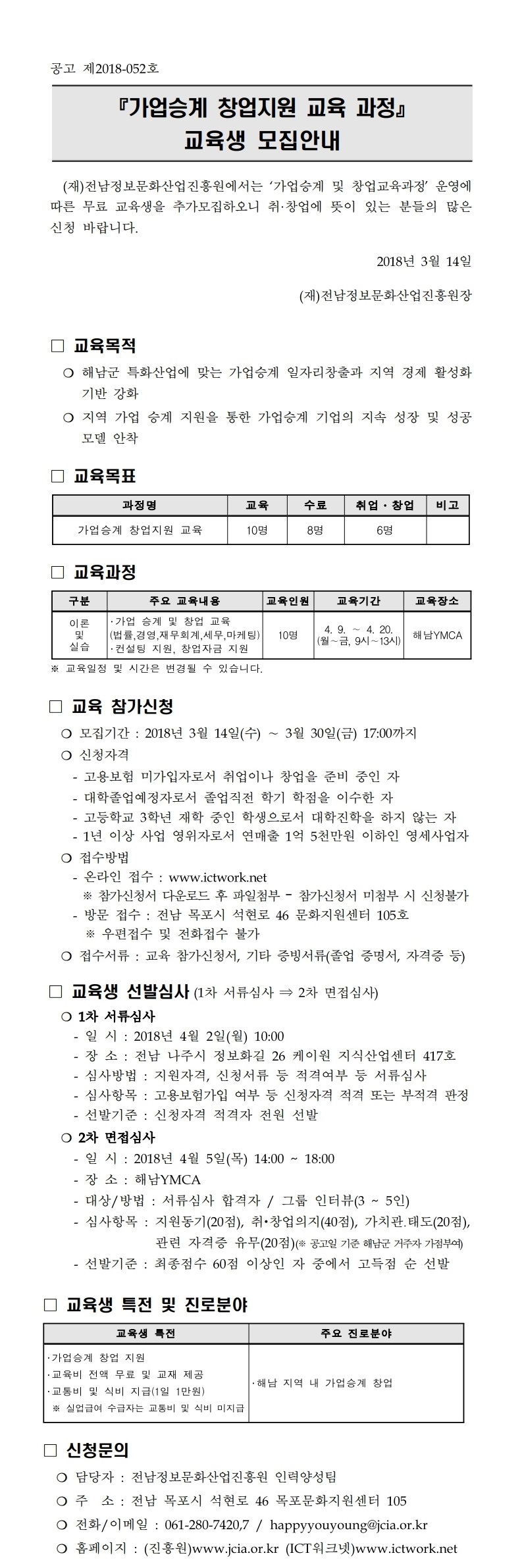 연락처 : <061-339-6903>, <ogm@jcia.or.kr>, 팩스 : <061-331-5004>