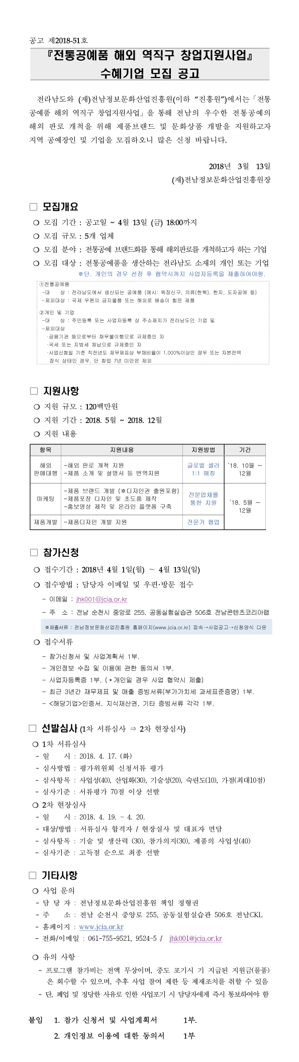 연락처 : <061-339-6903>, <ogm@jcia.or.kr>, 팩스 : <061-331-5004>