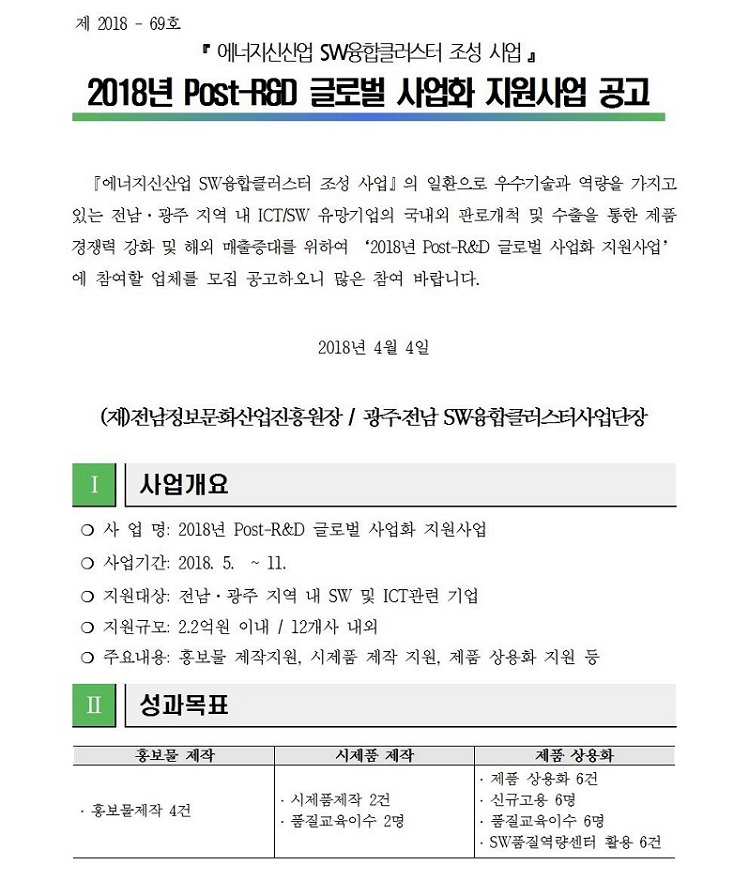 2018년 Post-R&D 글로벌 사업화 지원사업 공고