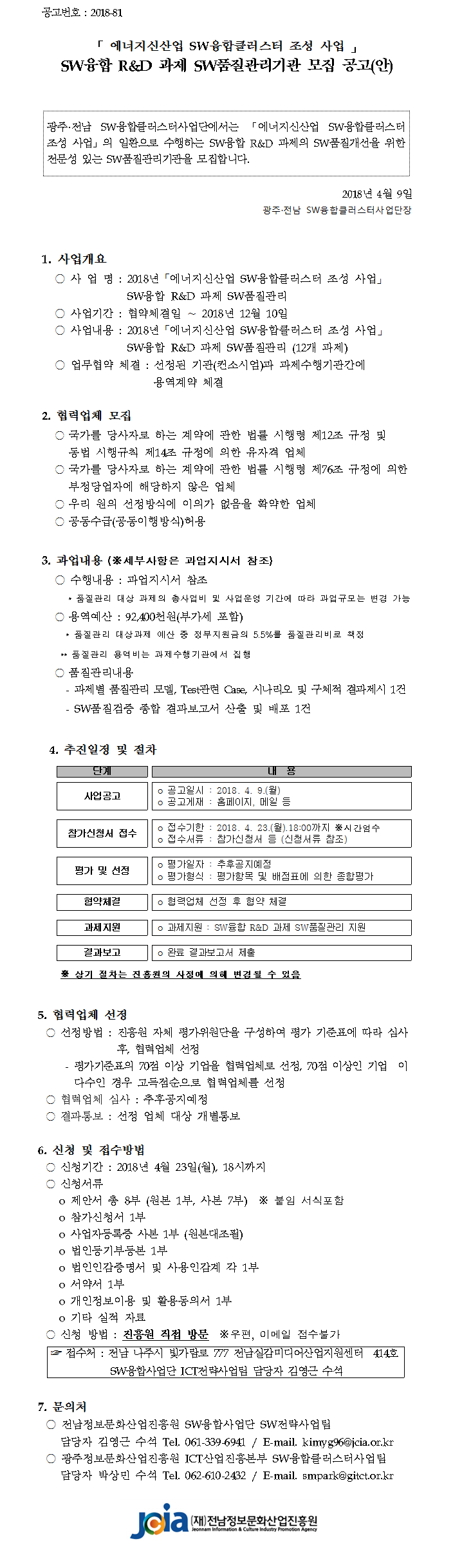 SW융합 R&D 과제 SW품질관리기관 모집 공고