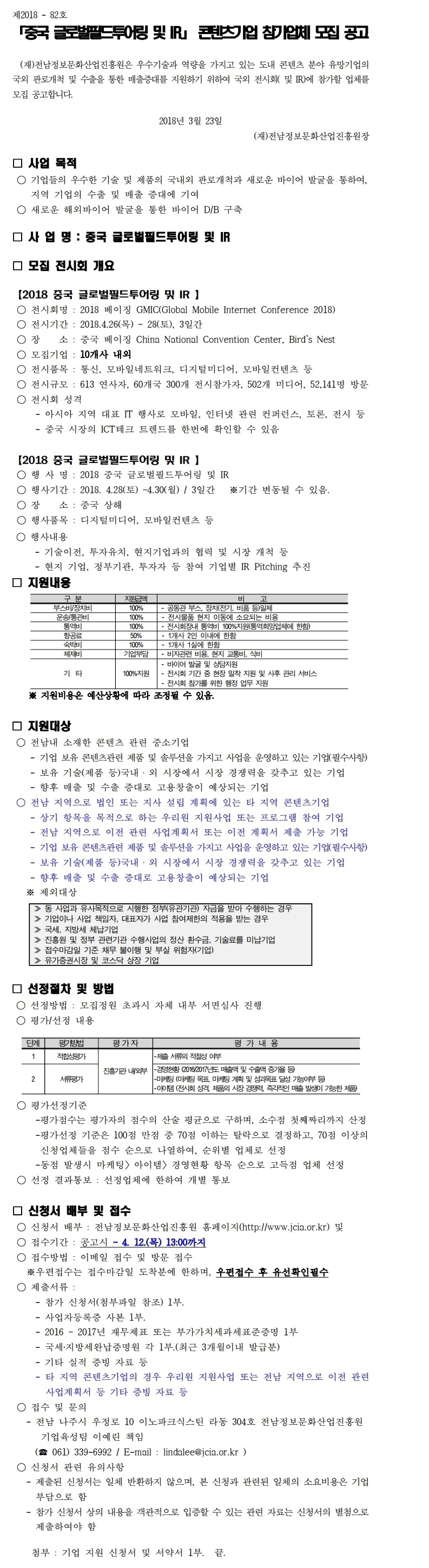 [재공고]중국 글로벌필드투어링 및 IR 콘텐츠기업 참가업체 모집 공고