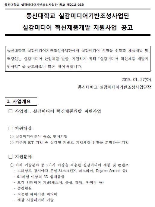 [동신대학교 실감미디어기반조성사업단] 실감미디어 혁신제품 개발지원사업 재공고