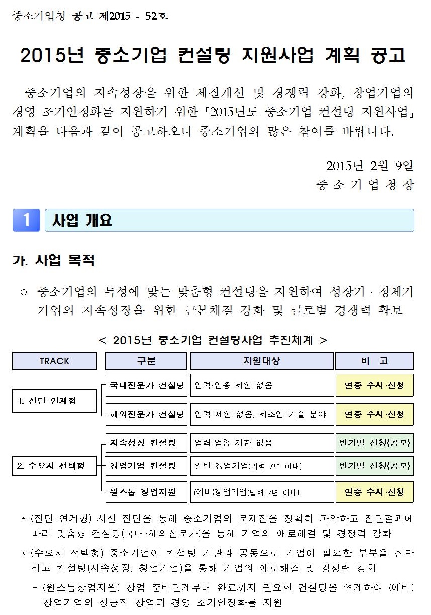 [중소기업청] 2015년 중소기업 컨설팅 지원사업 계획 공고