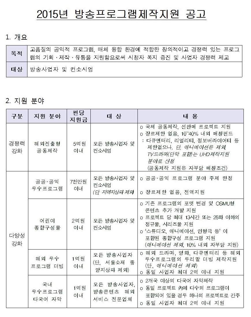[한국방송통신전파진흥원] 2015년 방송프로그램제작지원 공고
