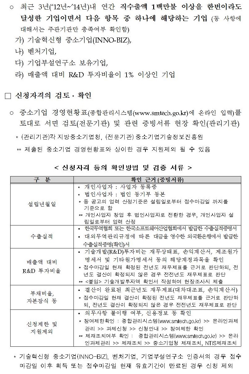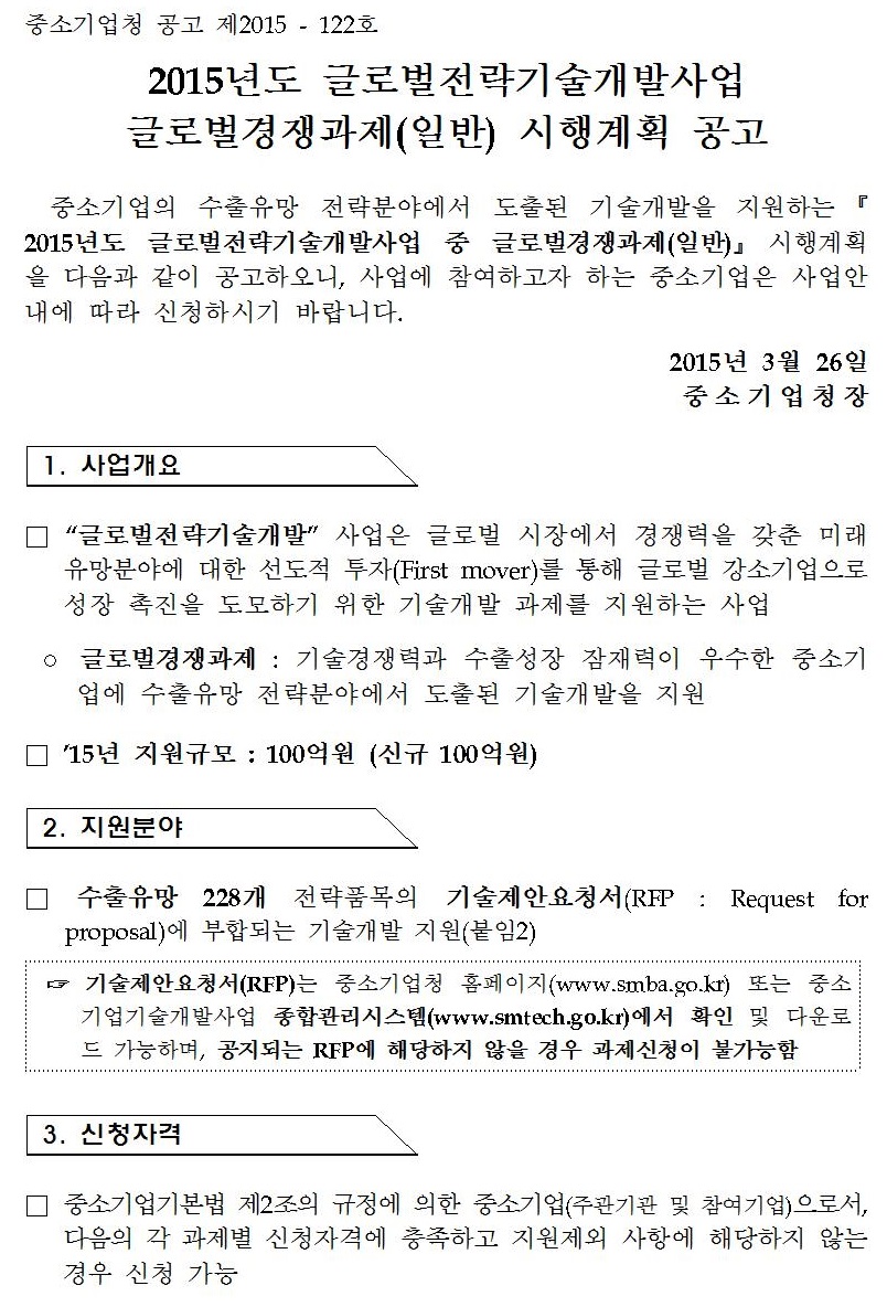 [중소기업청] 2015년도 글로벌전략기술개발사업 글로벌경쟁과제(일반) 시행계획 공고