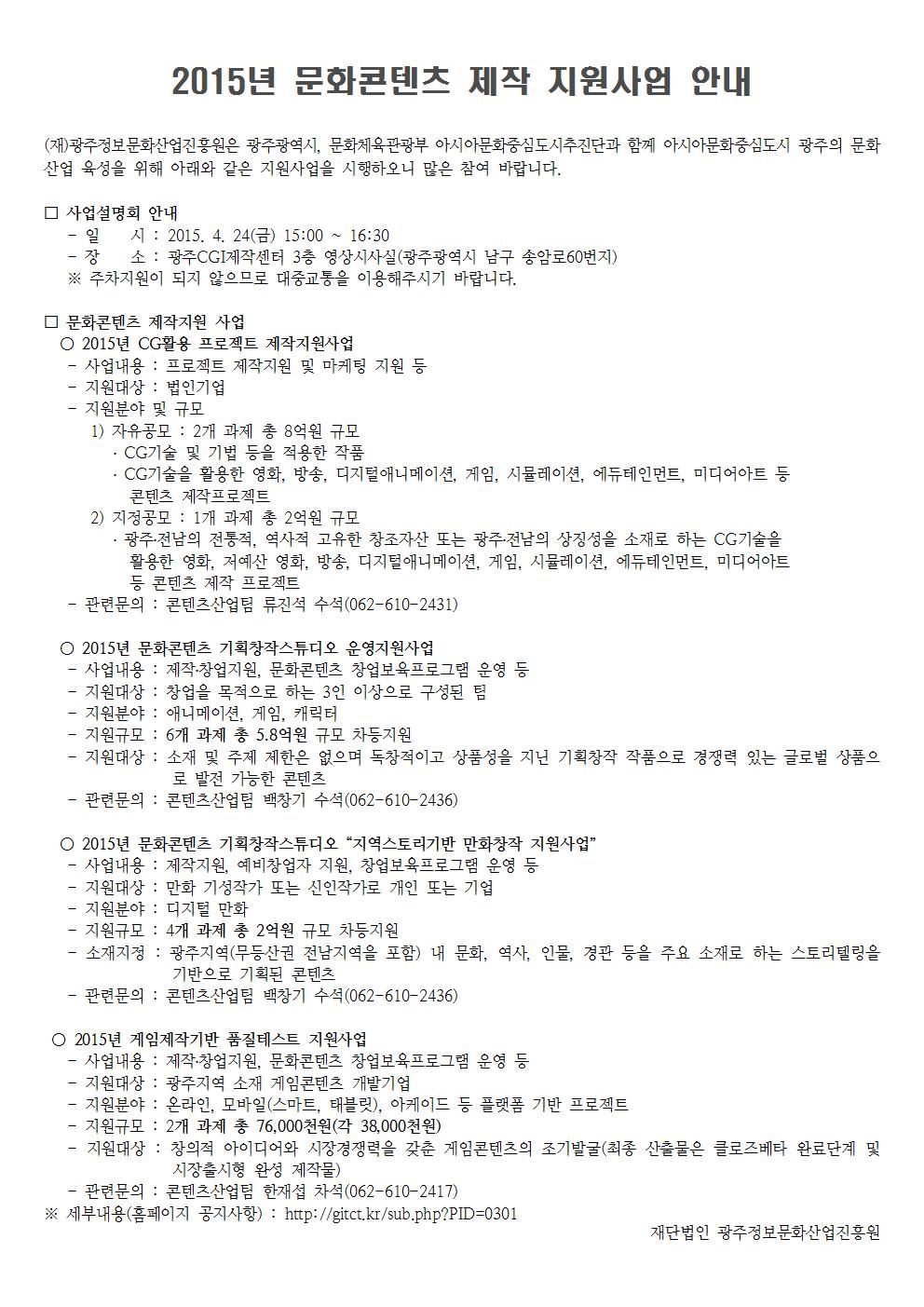 [광주정보문화산업진흥원] 2015년 문화콘텐츠 제작 지원사업 안내