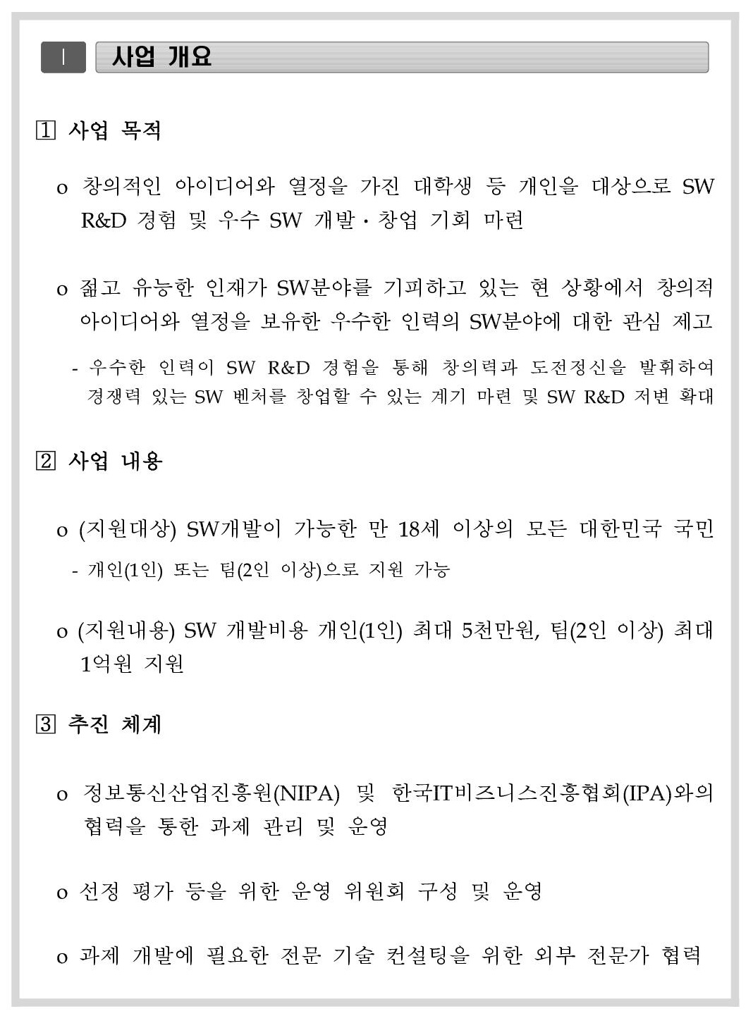 [정보통신산업진흥원] 2015년도 창의도전형 SW R&D 지원사업