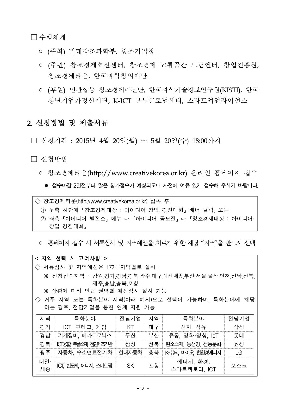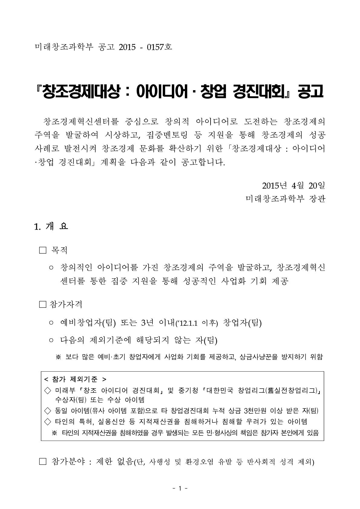 [미래창조과학부] 2015 창조경제대상 : 아이디어·창업 경진대회 공고