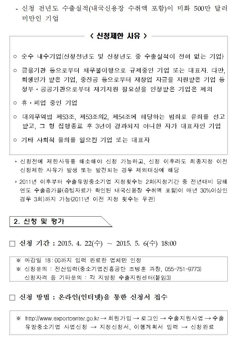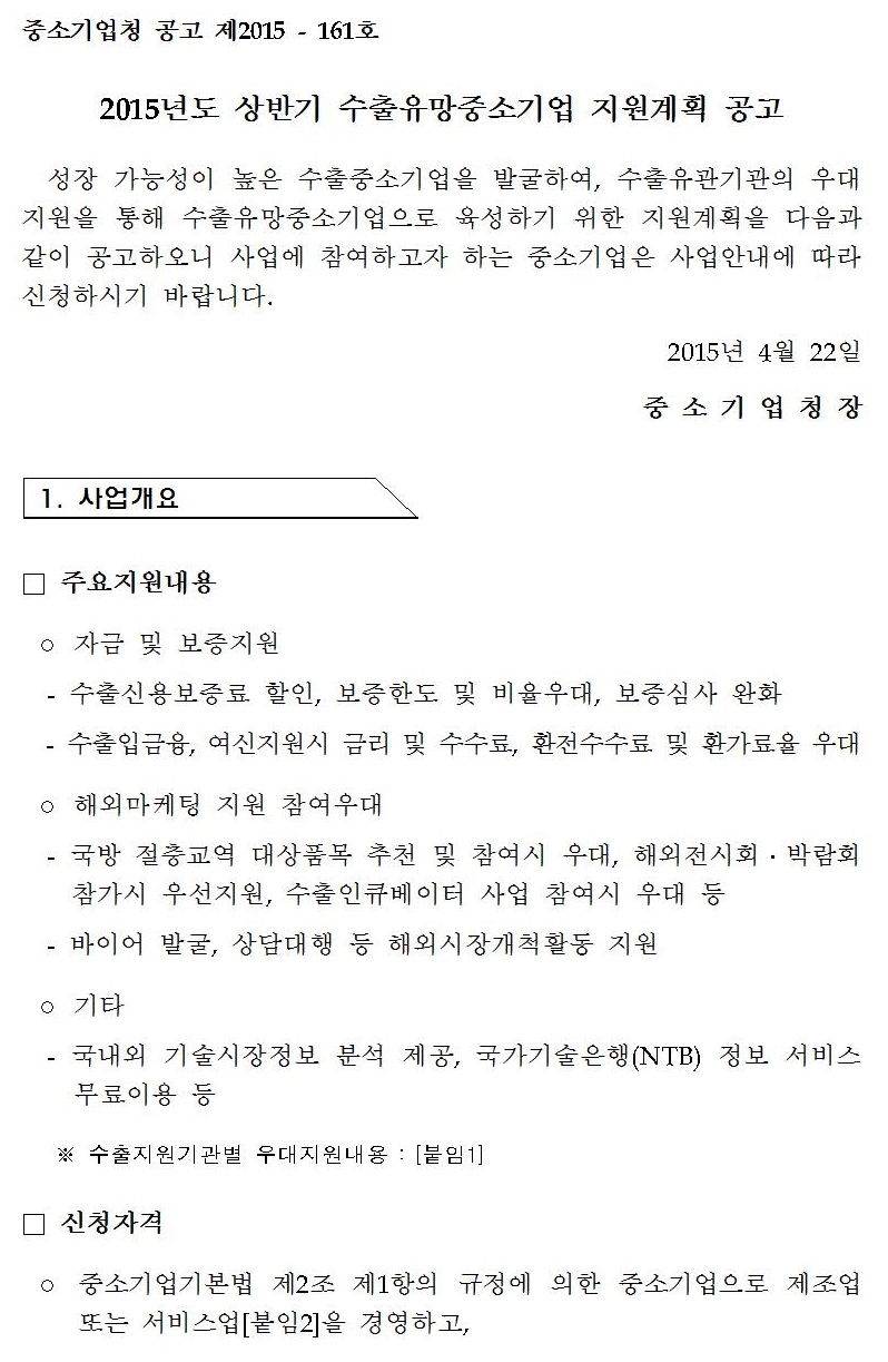 [중소기업청] 2015년도 상반기 수출유망중소기업 지원계획 공고