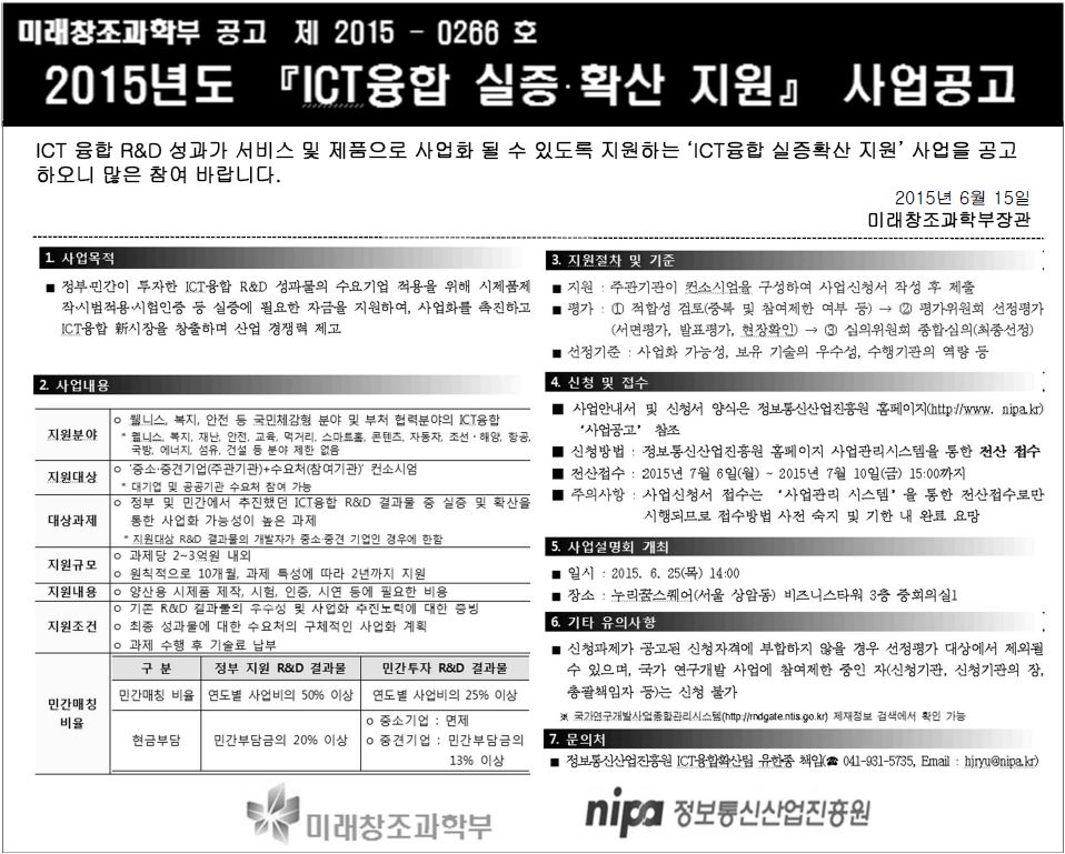[정보통신산업진흥원] '15년 ICT융합실증확산 지원사업 신규과제 공고(2차)