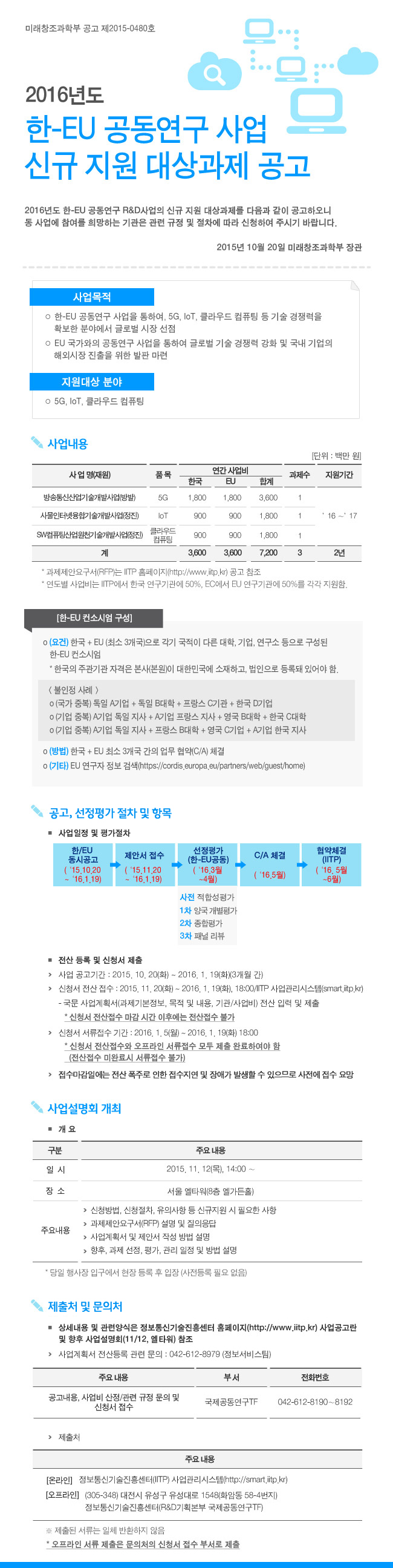 [정보통신기술진흥센터] 2016년도 한-EU 공동연구 사업 신규 지원 대상과제 공고