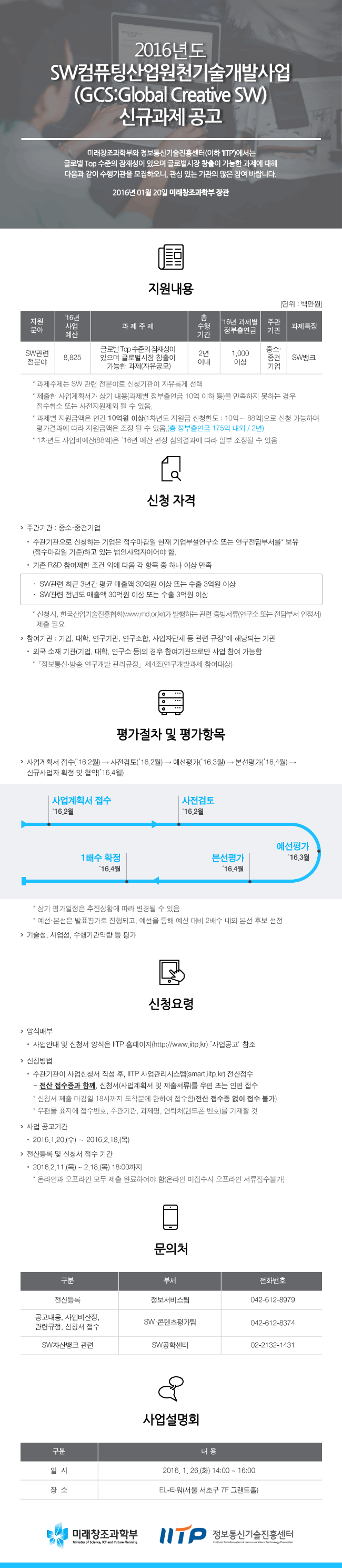 [미래창조과학부] 2016년도 SW컴퓨팅산업원천기술개발사업(GCS:Global Creative SW)