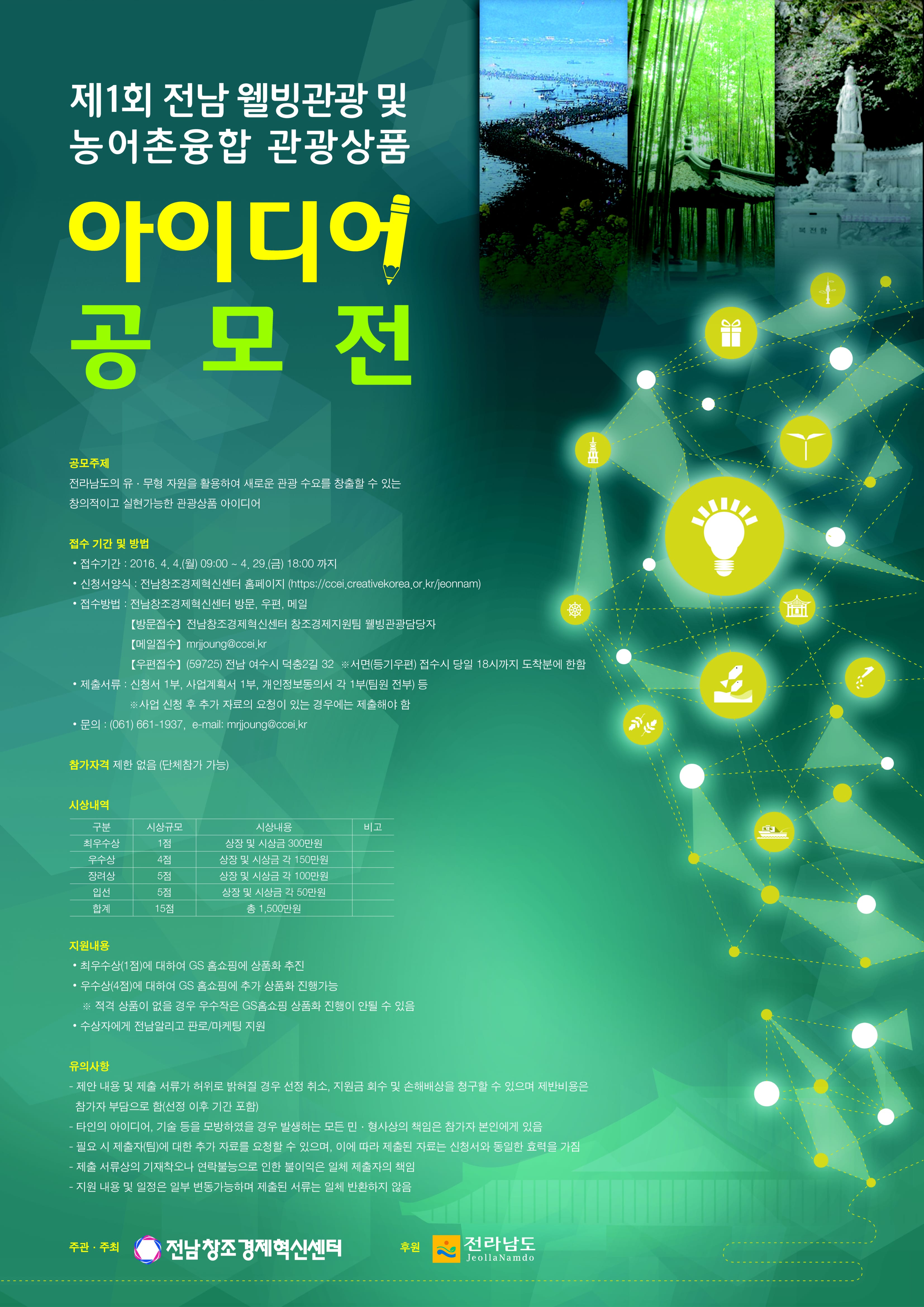 『제1회 전남 웰빙관광 및 농어촌융합 관광상품 아이디어 공모전 모집』공고