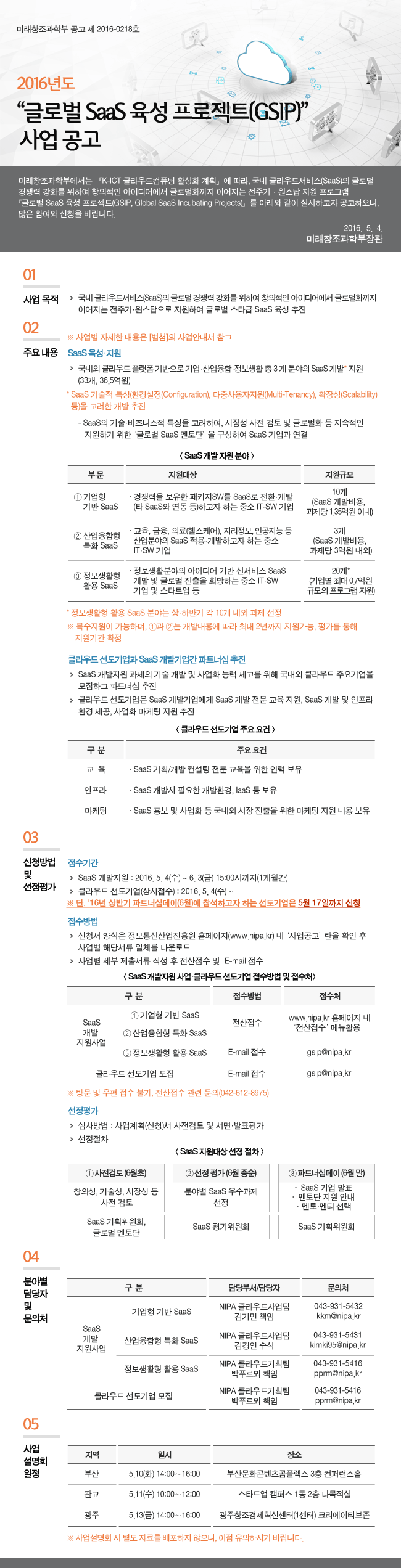 [미래창조과학부] 2016년도“글로벌 SaaS 육성 프로젝트(GSIP)”사업 공고