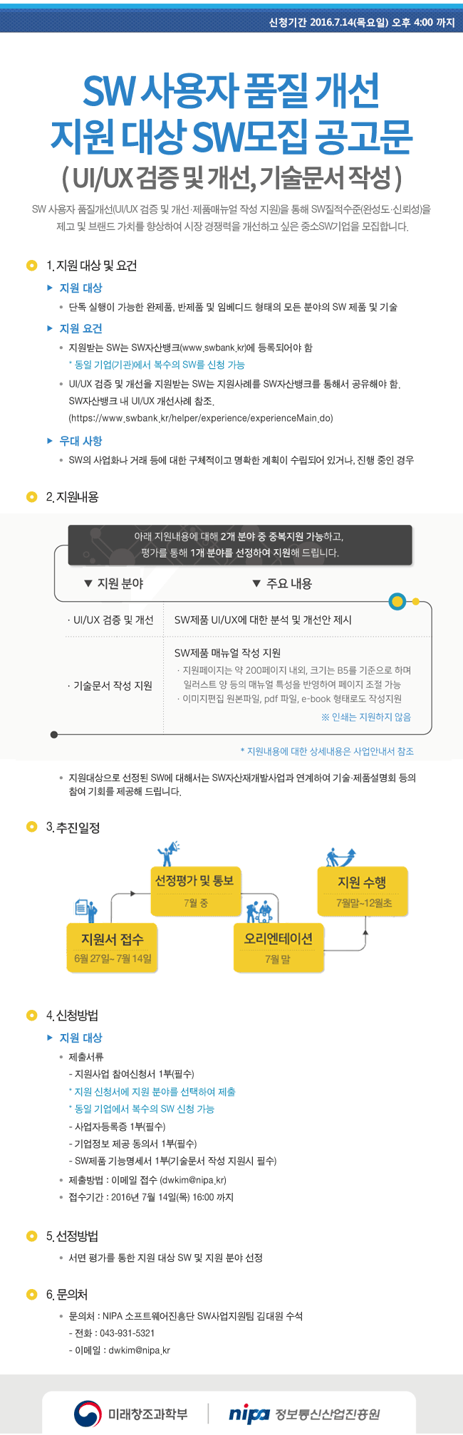 [정보통신산업진흥원] SW 사용자 품질 개선 지원 대상 SW모집 2차공고
